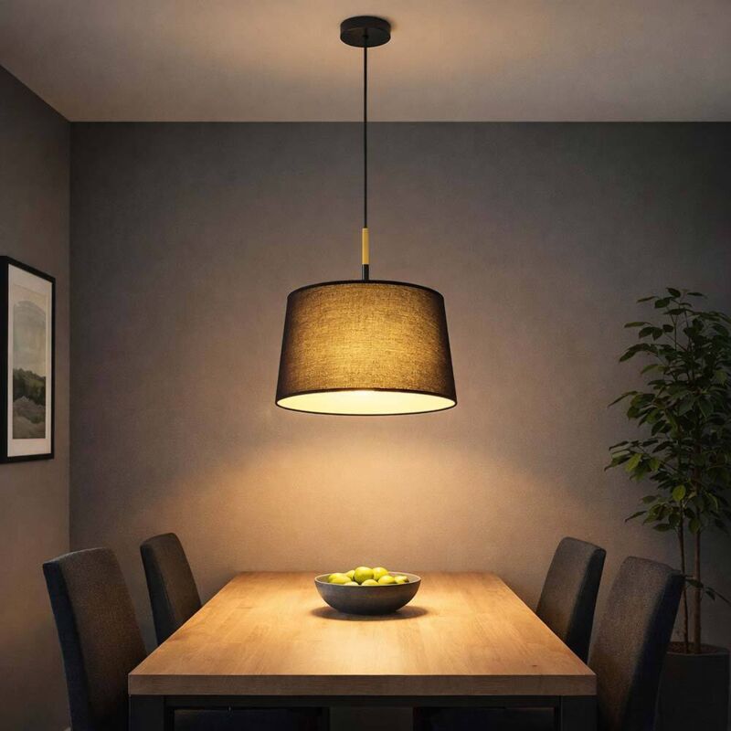 FRIDEKO HOME Suspension Noir Or,Moderne Lampe à Suspendre Plafonnier E27 Rond Abat-jour Tissu Lampe à Suspendre pour Salon Salle à manger Chambre à coucher