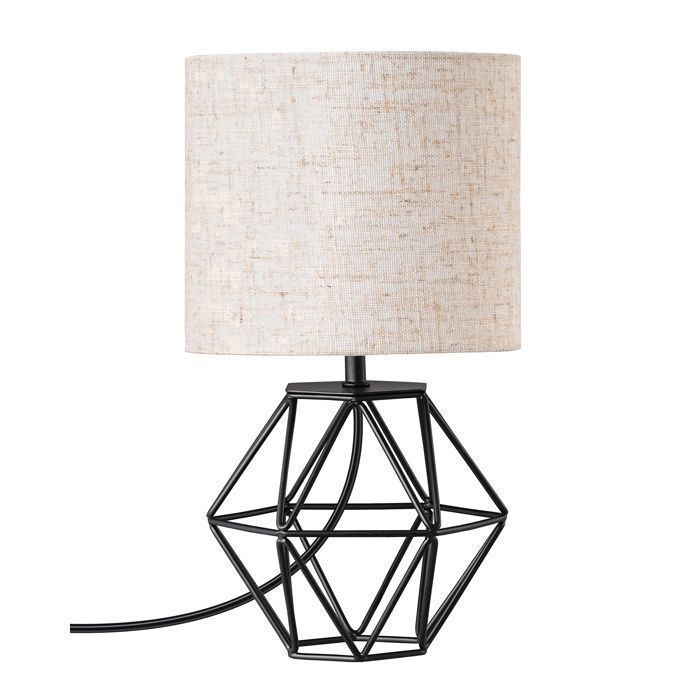 EDISHINE Lampe de Chevet avec Abat-jour en Lin Beige et Base Noir Métallique en Forme de Diamant, E14 Ampoule LED Incluse de 2700K Blanc Chaud, Lampe de Table Moderne pour Chambre, Bureau, Salon