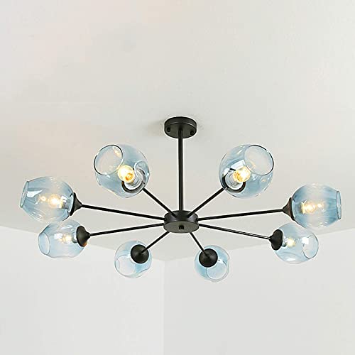 NOKXDKJWT Lustre décoratif Moderne, plafonnier, Lampes moléculaires créatives, Lustre en Verre Moderne, éclairage de Salon, Restaurant, Abat-Jour Noir et Bleu, 10 lumières