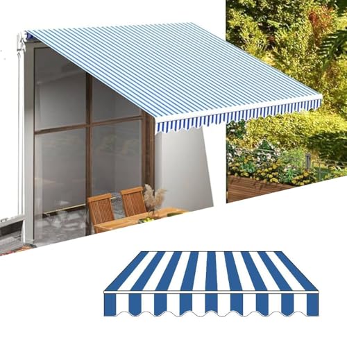 Tissu de rechange pour auvents rétractables – 2,4 m, 3 m, 3,7 m, 4,9 m, 6,1 m – Housse d'auvent imperméable et anti-UV pour terrasse, cour, terrasse – Abat-jour d'extérieur (bleu, 5 x 4,5 m)