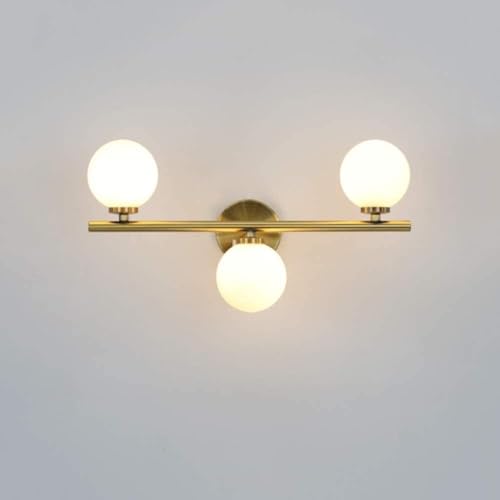 BLOOHK Applique murale moderne dorée à 3 lumières for salle de bain, applique globe nordique avec abat-jour en boule verre, créative métal Art déco E27 for façade miroir, salon et chambre coucher