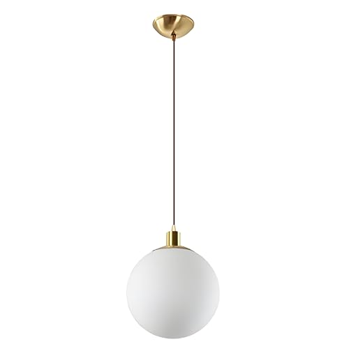 HJXDtech Luminaire Suspension avec abat-jour boule en verre blanc Lampe à suspension de plafond Loft Bar en métal doré, Cuisine Salon & Salle à manger Lustre (1-lumière)