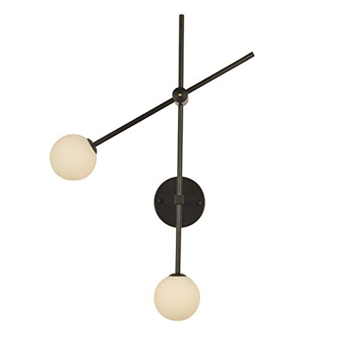 Applique Murale Industrielle rétro, Applique Murale en métal à 2 lumières, Applique Murale à Abat-Jour en Boule de Verre Blanc, Appliques murales de Chevet de Chambre Simple avec Lampes murales à