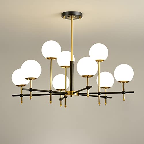 Lampe à Suspension de Salon, luminaire de Plafond décoratif atmosphérique de Chambre à Coucher de Salle à Manger Nordique, Suspension Spoutnik de matériel avec Abat-Jour en Boule de Verre Laiteux