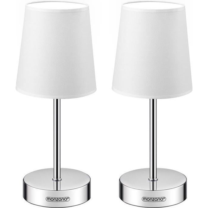 Monzana Set de 2 Lampe de table Blanc avec abat-jour lampe de chevet interrupteur E14 pour chambre salon décoration