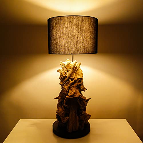 AquaOne Lampe naturelle - Lampadaire en bois naturel rustique - Lampe sur pied - Décoration de meubles en bois - Fabriquée à la main avec racine unique - Abat-jour noir (Tokyo)