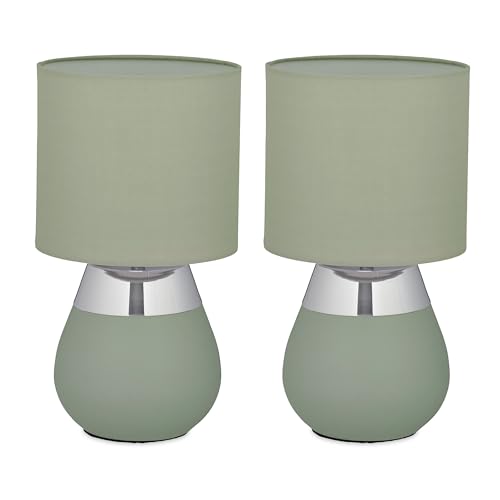 Relaxdays Lampe de Chevet, Lot de 2, Abat-Jour, Douille E14, câble, H x D : 32 x 18 cm, pour la Chambre, Vert et argenté