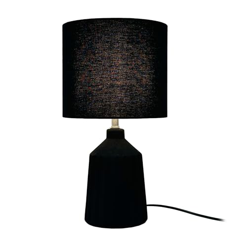 Relaxdays Lampe de Chevet en Tissu, Pied céramique strié, Abat-Jour E14, câble, Noir, 42x23x23 cm