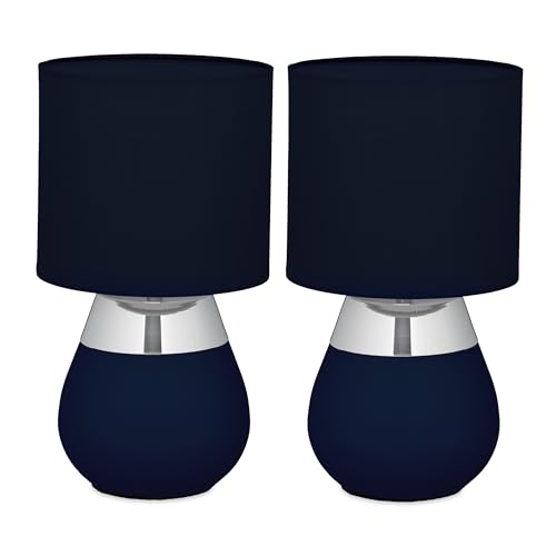 Relaxdays Lampe de Chevet, Lot de 2, Abat-Jour, Douille E14, câble, H x D : 32 x 18 cm, pour la Chambre, Bleu et argenté