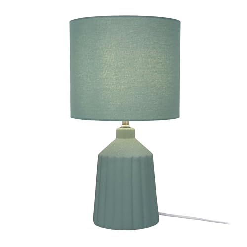 Relaxdays Lampe de Chevet céramique à Motifs, Abat-Jour Tissu, E14, 42x23x23 cm, câble, Menthe