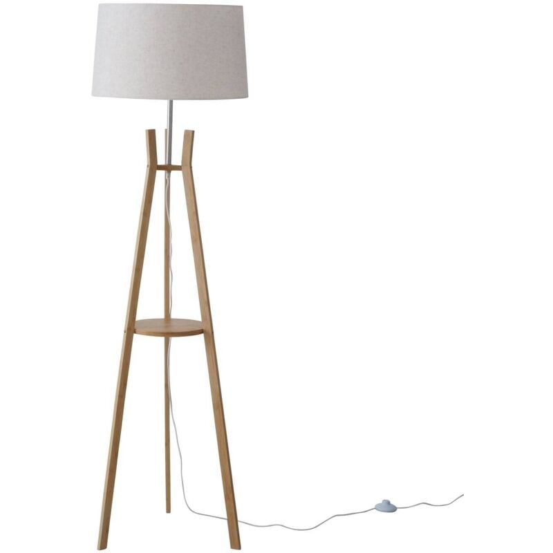 Lampadaire chevalet bois foncé, abat-jour en lin crème tissu teinté bois foncé