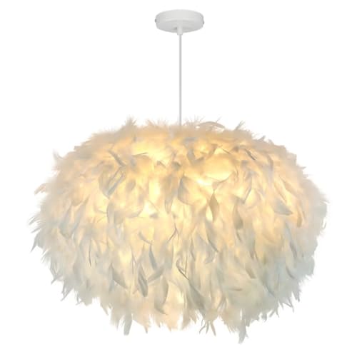 DLGLOLIN Suspension Luminaire Plume Lustre Intérieur Abat-Jour en Blanc Plumes Lampe Suspendue Ado Déc Plafond Fille Plafonnier pour Chambre Couloir Salon