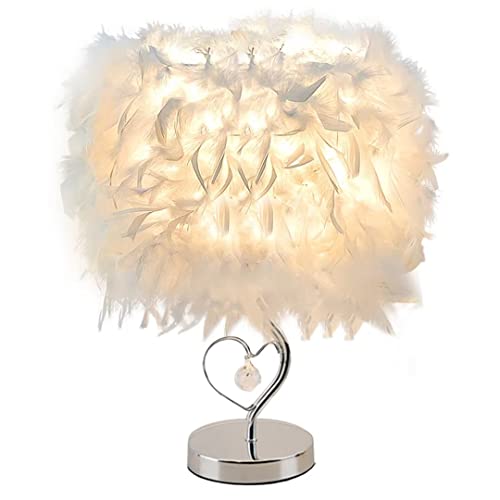 GUANSHAN Plume Lampe de Chevet Abat-Jour Moderne Plume Table Lumière Bureau Abat-Jour avec Cristal en Coeur et Base Mentale pour Salon, Chambre, L