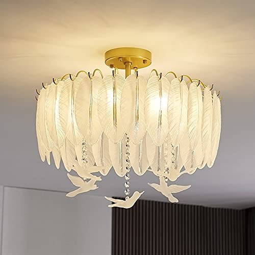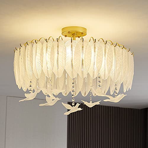 HXYSXHJUO Lustre POKHDYE pour Salon et Chambre, Abat-Jour en Verre Plume, Lustre Moderne doré, luminaire décoratif, culot E14