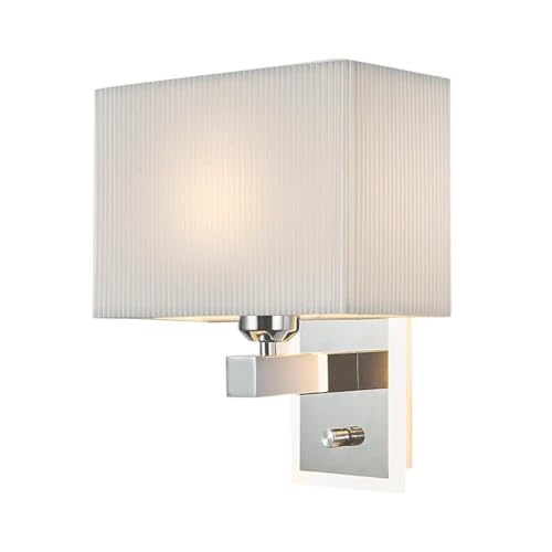Applique murale moderne avec interrupteur rotatif, lampe de lecture de chevet, abat-jour en tissu plissé blanc, rétroéclairage chromé à 1 lumière pour chambre à coucher, salon, hôtel, couloir (Blanc)