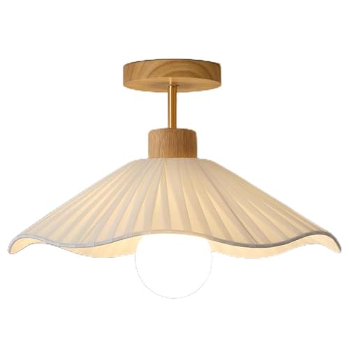 Plafonnier Semi-encastré Moderne avec Abat-Jour en Tissu Plissé, Luminaire en Bois De 40 Cm, Plafonnier Blanc pour Chambre, Salon, Salle À Manger, Couloir Et Chambre d'enfant