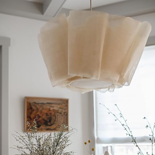 AJYBYUKJ Plafonnier Moderne Pendentif Tambour Lustre Grand Tissu Ferme Lin Tambour luminaires Boho Salle à Manger Lustre avec Abat-Jour en Tissu plissé pour Salon Chambre - 23,6 Beauty Comes