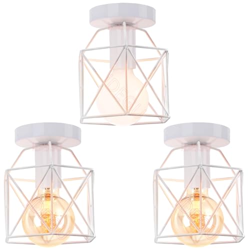 iDEGU Lot de 3 Lustre Plafonnier Industriel E27 Luminaire Abat-jour en Fer Vintage Lampe Suspension Cage Blanc Ø15cm Éclairage de Plafond pour Salon Chambre Cuisine (3 Pcs)