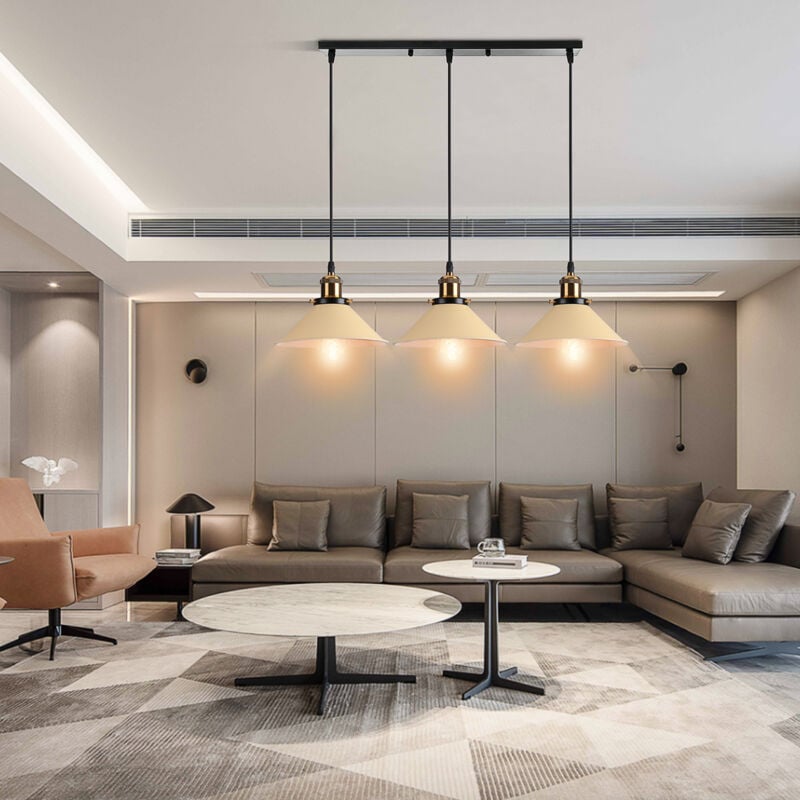 Lustre Suspension Industriel Rétro E27 Lampe Plafonnier Abat-jour Fer Suspension Luminaire Réglable Blanc Ø29CM - 3Pcs