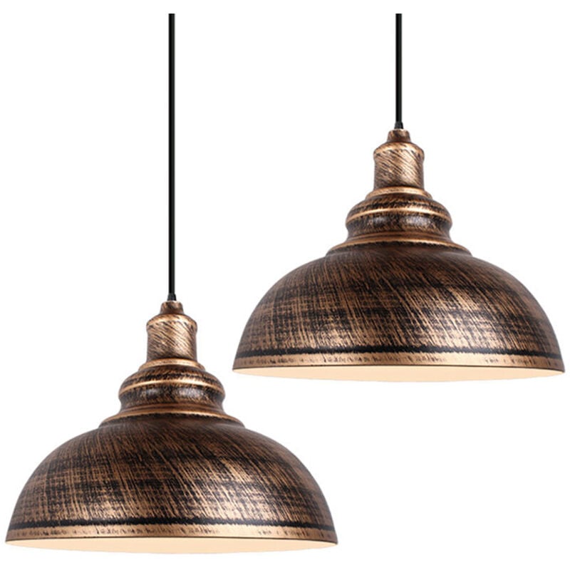 Lustre Suspension Industriel Rétro E27 Lampe Plafonnier Abat-jour Fer Suspension Luminaire Réglable Couleur Laiton Ø29CM - 2Pcs