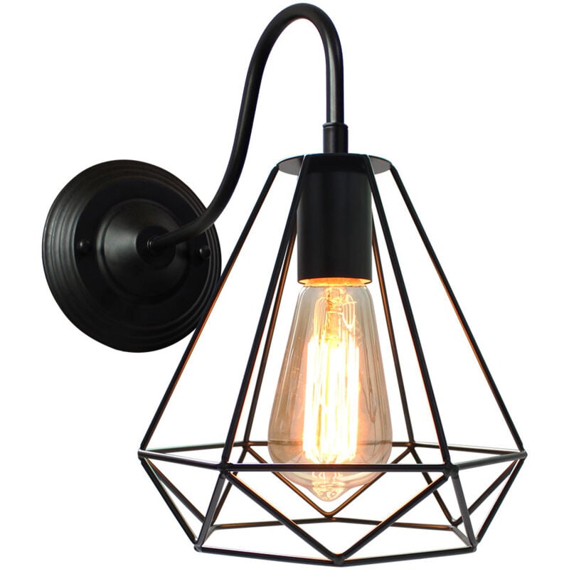 Applique Murale Industrielle Vintage Lampe Murale Abat-jour Cage en Fer Noir Lampe de Mur Intérieur E27 - 1Pcs