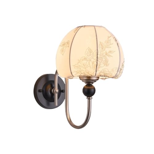 LUOYAOB Applique murale dorée style champêtre français, abat-jour en tissu imprimé à la main, en fer, for chambre, salon, entrée, couloir ou vestiaire.(Wall lamp 1)