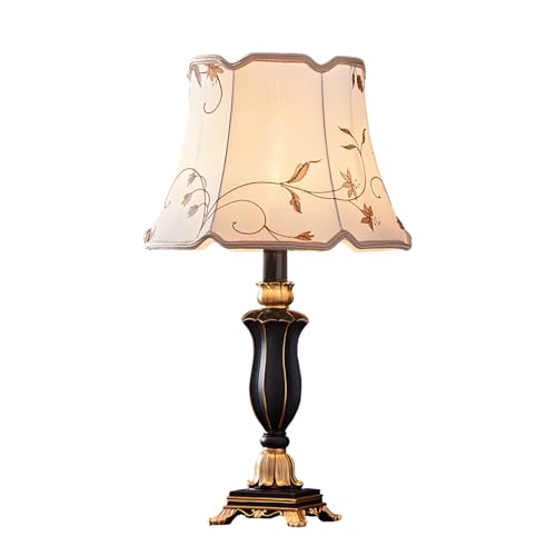 WLBHWL Lampe De Table Rustique En Résine De 52 Cm (20,4 Pouces), Lampe De Chevet Vintage Pour Salon Ou Chambre Avec Abat-jour En Tissu Imprimé, Lampe De Chevet Rustique Traditionnelle