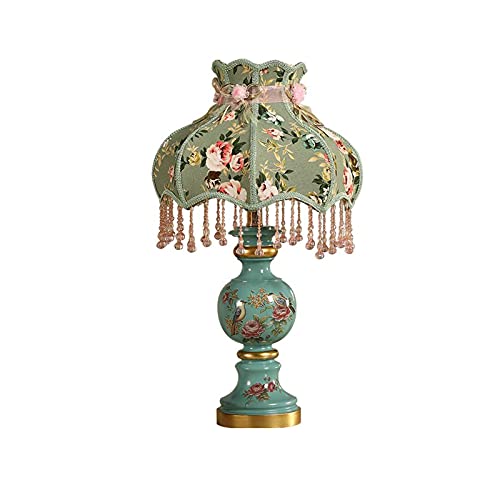 HCZKIUJY Lampe de Chevet élégante et rétro en céramique, Lampe de Table Ovale avec Abat-Jour en Tissu imprimé Vert.