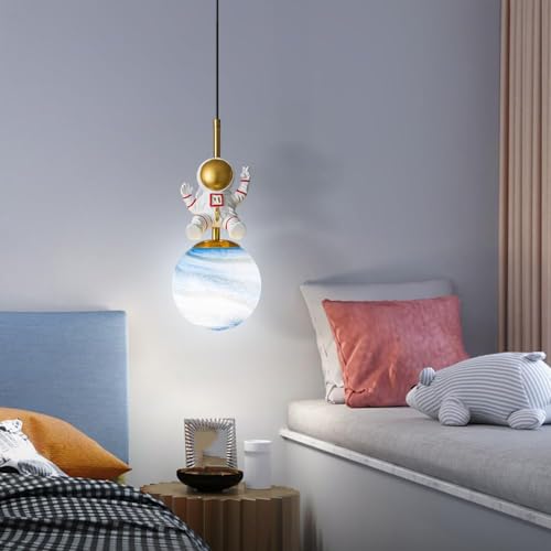 SXSHEYS Lampe Suspendue Moderne Style Astronaute Milieu du siècle, idéale pour Une Chambre d'enfant. Abat-Jour imprimé en 3D, Motif Lune et planète. Convient également pour Une ch