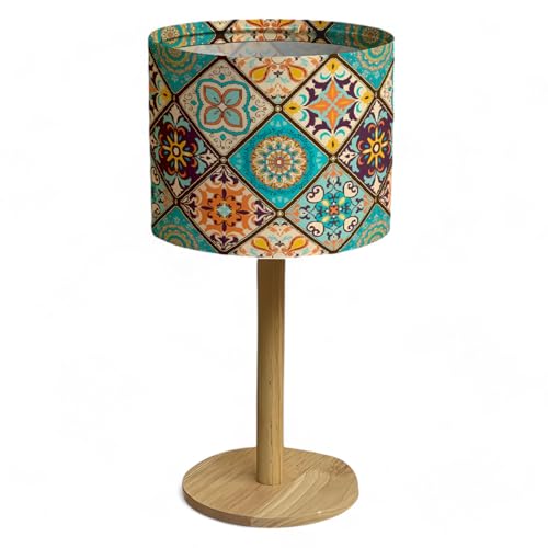 Bellaluma Lampe de Chevet avec Abat-Jour Imprimé | Lampe Décorative de Table en Bois pour Chambre, Salon ou Entrée | Coffret Cadeau Premium + Ampoule LED Incluse