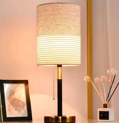sxysxysxy Lampe de Table avec Interrupteur à Tirette Ancien Abat-Jour en Tissu Lampe de Chevet Américain Moderne E27 Lampe de Bureau pour Chambre à Coucher Le Salon Hôtel Café D18*H45CM,A
