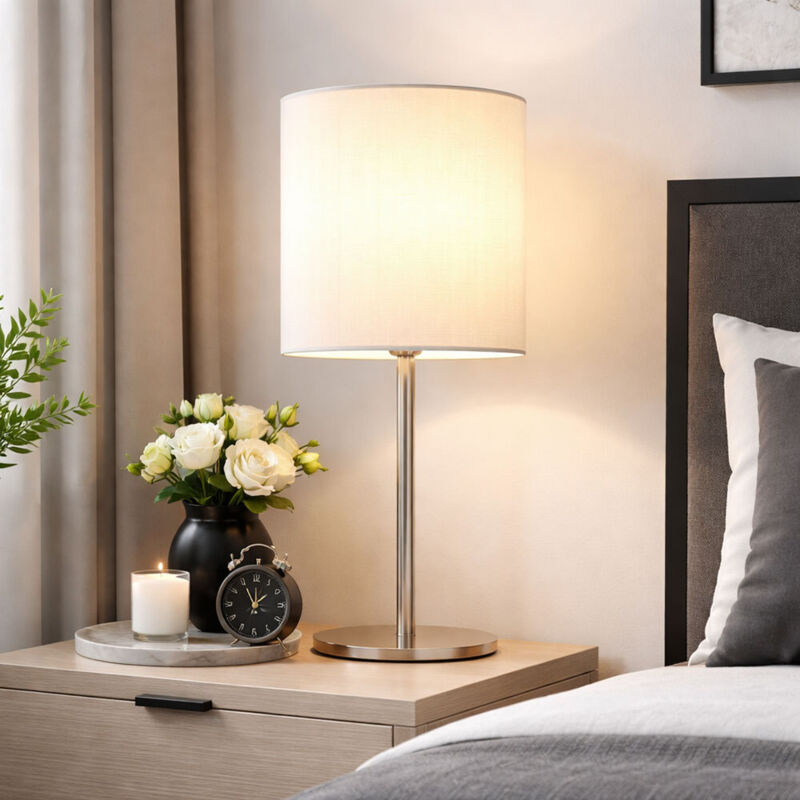 Lampes de chevet, lampe de table de chambre avec abat-jour en tissu, lampe de chevet ronde pour chambre, salon, table à manger, bureau (avec ampoule