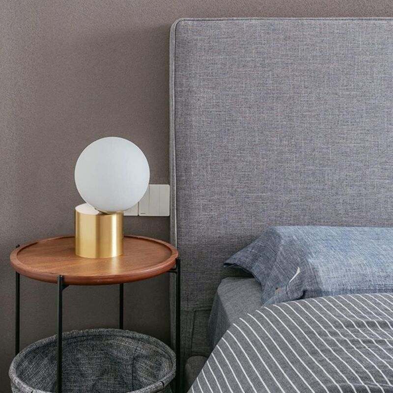 Lampe de Table Moderne en Forme de Globe Doré, Lampe de Bureau Vintage avec Base en Métal pour Abat-Jour en Verre, Lampe de Chevet LED pour Chambre à