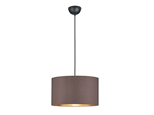 Suspension ronde intemporelle avec abat-jour en tissu marron et intérieur doré Ø 40 cm, Suspensions d'éclairage intérieur
