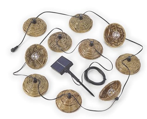 Reality Leuchten Mood R74761932 Guirlande lumineuse d'extérieur hybride en plastique noir avec abat-jour en plastique marron et 10 LED de 0,5 W, télécommande, longueur 5,7 m