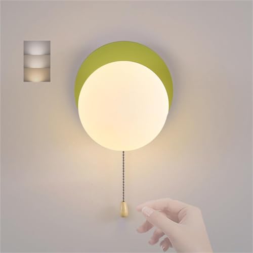 LED Moderne Applique Murale Décorative avec Tirette Interrupteur Lampe Murale G9 Douille avec Globe Abat-jour Éclairage Mural Métal Lumière Tricolore Réglable Luminaire Mural pour Salon (Vert,Rond)