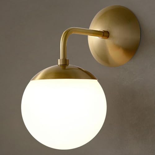 Moder Cuivre Applique Murale Blanc Globe Verre Abat-Jour Ordic Mural Scoce Chevet Éclairage Mural Luminaires Idoor S pour Livig Room Diig Room Chambre à Coucher, 1 Pack