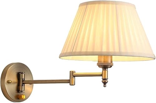 BUNCC Applique Murale rétractable Simple américaine Fer Pliant Bras oscillant Appliques murales Tissu Art Abat-Jour éclairage Mural E27 Base intérieure pour Chambres Chevet Salle d'étude Salon hôtel