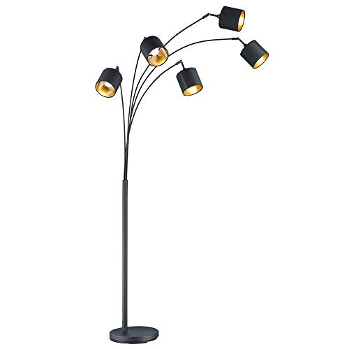 Reality Lampe à arc TOMMY R46330579, métal, noir mat, abat-jour en tissu noir/doré