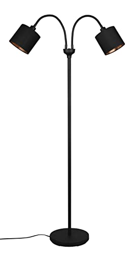 Reality Lampadaire TOMMY R46332079, métal noir mat, abat-jour en tissu noir, doré, exclusivité 2x E14