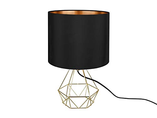 meineWunschleuchte Lampe de table design LAUREA avec corps en treillis et abat-jour en tissu, noir doré