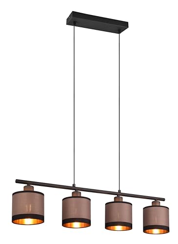Reality Leuchten Suspension Davos R31554041, métal noir mat, abat-jour tissu taupe/noir/doré, excl. 4x E14