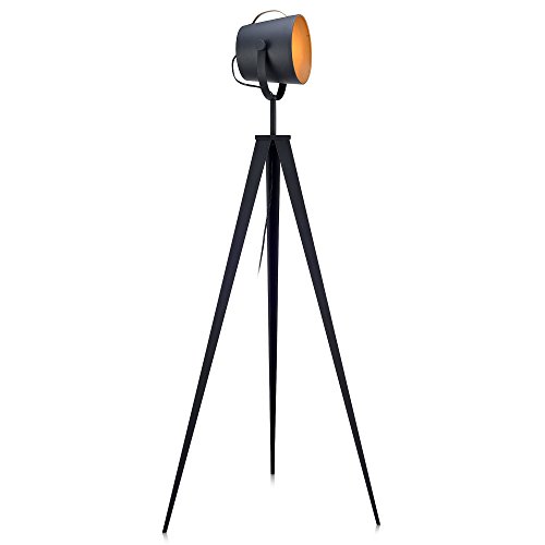 BRILONER - 1380-015 Lampadaire trépied vintage - style projecteur de cinéma - abat-jour métal noir mat & or - ampoule E27 - 60 W max. - hauteur : 148 cm, Noir-or-mat, 580x345x1480mm (LxDxH)