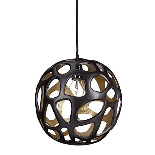 Relaxdays Suspension luminaire de plafond abat-jour boule noir intérieur doré diamètre 30 cm design, noir