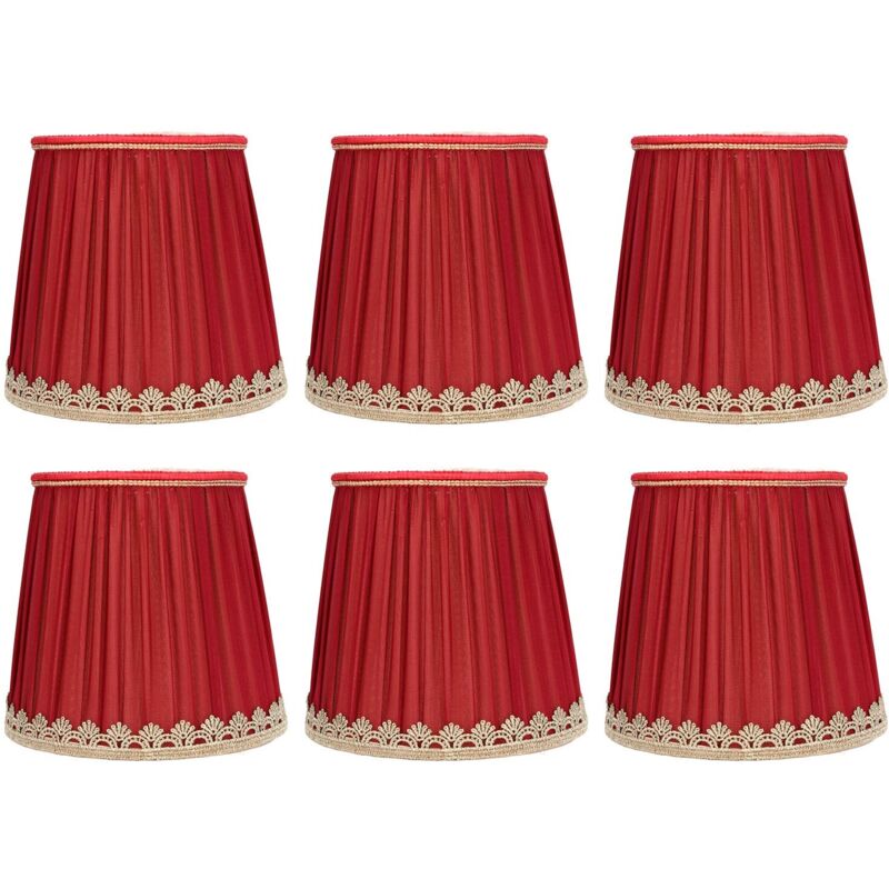 Abat-jour E14, Abat-jour en Tissu Rouge à Bordure Dorée Plissé à Clipser pour Lustre Cristal, Lampe Chevet, Applique Murale, 3PCS, Tissu Rouge,