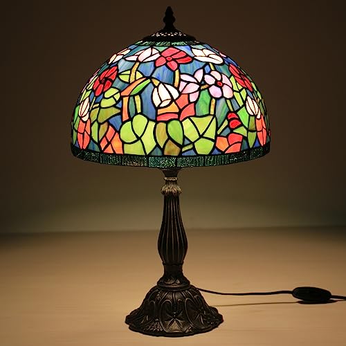 Mengjay Retro style Lampe de table,Vintage Vitrail Style Lampes à poser Rétro Main Verre Abat-jour Lampe de Chambre Intérieur Art Déco Lampe De Bureau pour Bureau et Table de Chevet (B)