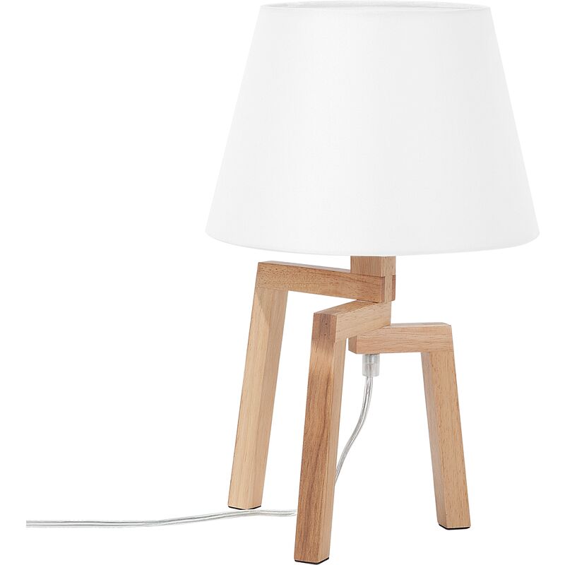 Lampe de Table à Poser Déco 3 Pieds en Bois et Abat-jour en Tissu Blanc E14 Max 40W Multifonctionnelle et Élégante pour Intérieurs Modernes Baliani