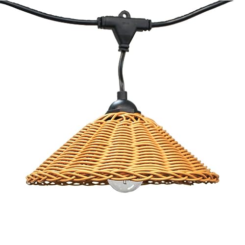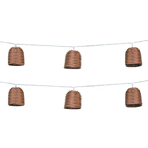 Guirlande esprit guinguette Little Garden 10 lumières E27 70lm IP44 blanc chaud 6m abat-jour en rotin PVC