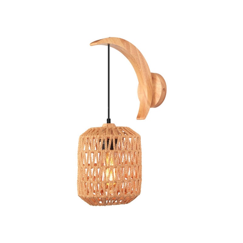 Aimoonsa – Applique murale vintage en bois et métal – Abat-jour en rotin tressé 20*23 cm – E27 pour salon, chambre, couloir – Installation facile