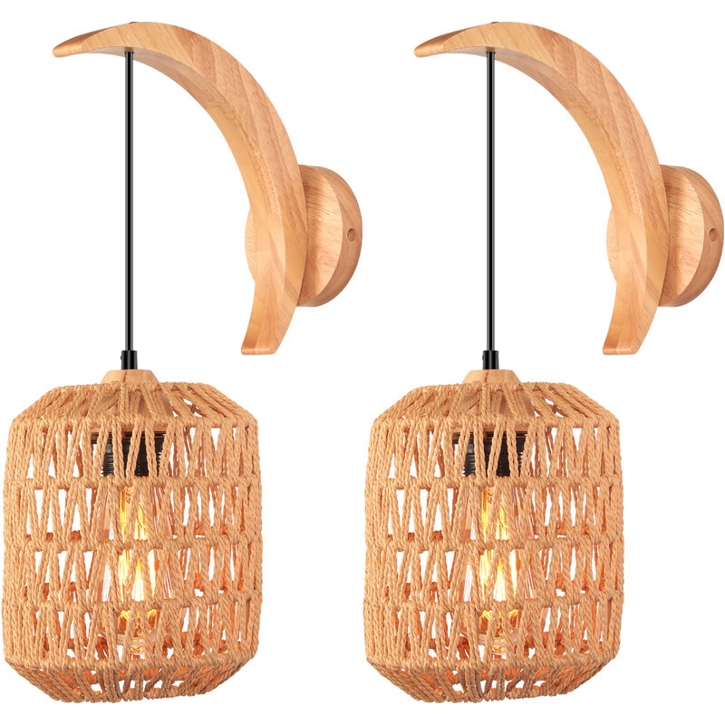 Applique Murale Rétro Lampe Murale Abat-Jour en Rotin Tissé Luminaire Murale Réglable Ø16CM - 2Pcs